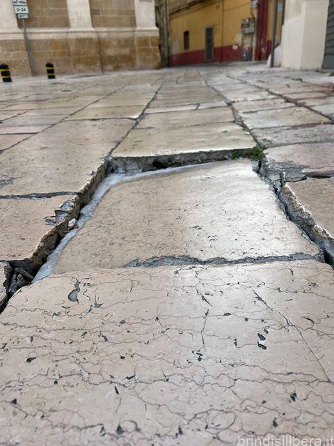 Ho appena assistito ad un incidente di alcuni ragazzini a causa del basolato che in vari punti ha ceduto. Come si evince dalle foto il dislivello è stata la causa della caduta in moto dei ragazzini. Ho immediatamente segnalato all’assessore ai Lavori Pubblici Cosimo Elmo e al dirigente dello stesso ramo Architetto Fabio Lacinio l’accaduto pregando gli stessi di intervenire tempestivamente per la messa in sicurezza del tratto in Piazza Duomo.