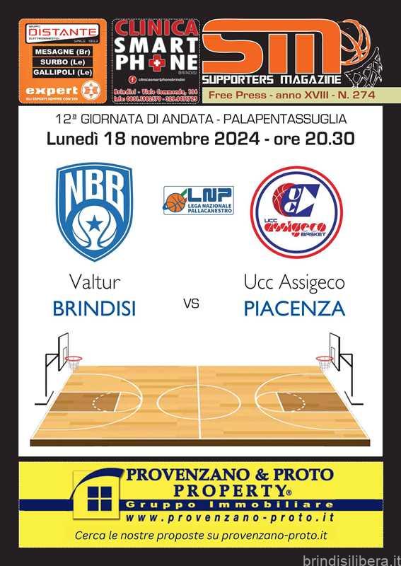 in occasione della partita tra Valtur e Ucc Assigeco Piacenza, palla a due lunedì 18 novembre 2024 alle ore 20.30. Alleghiamo la copertina, la versione digitale è disponibile sul nostro sito internet.
