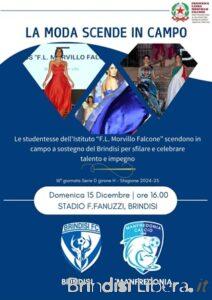Questa collaborazione vedrà un momento speciale domenica prossima, 15 dicembre, durante la partita Brindisi FC – Manfredonia Calcio 1932, in programma allo stadio “Franco Fanuzzi” alle ore 16.00. Nell’intervallo tra il primo e il secondo tempo, le studentesse dell’Istituto Morvillo Falcone” scenderanno in campo per una sfilata che coniuga moda e sport regalando al pubblico un’esperienza insolita e originale. Saranno presentati gli abiti progettati e realizzati dalle stesse studentesse nell’ambito del piano formativo della scuola. Un momento che metterà in risalto il talento, la creatività e le competenze tecniche degli studenti testimoniando come lo sport possa essere uno strumento per valorizzare l’istruzione e i giovani.