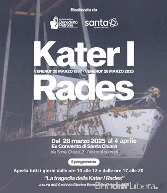 Venerdì 28 marzo alle ore 17.00 è stata inaugurata la Mostra “La Tragedia della Kater I Rades”, presso lo Spazio Santa Culturale Yeahjasi nei locali dell’exconvento di Santa Chiara (nei pressi del Duomo) a Brindisi.