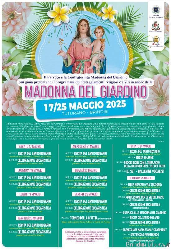 Un ricco programma di eventi contraddistingue, quest’anno, i festeggiamenti per la “Madonna del Giardino”, a Tuturano.