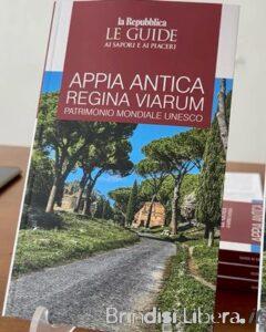 È stato il Salone di Rappresentanza della Provincia di Brindisi a ospitare la presentazione della Guida di Repubblica “Appia Antica, Regina Viarum: Patrimonio Mondiale dell’Unesco”, un grande viaggio da Roma a Brindisi passando per i Castelli Romani e la pianura Pontina, il casertano e il Sannio, l’Irpinia e la Basilicata, prima di approdare in Puglia con i due rami dell’Appia Claudia e dell’Appia Traiana, per tuffarsi nell’Adriatico che guarda a Oriente.