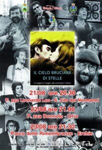 Sicuramente tra i protagonisti del calendario estivo spicca l’evento “Il cielo bruciava di stelle”, in programma giovedì 21 agosto in Piazza Leonardo Leo a San Vito dei Normanni con il patrocinio del Comune di San Vito, venerdì 22 agosto in Piazza Donnolo a Oria patrocinata dall’Amministrazione Comunale della città del Torneo dei Rioni e sabato 23 agosto nel Parco delle Rimembranza a Erchie con il Patrocinio dell’Amministrazione Comunale ercolana.