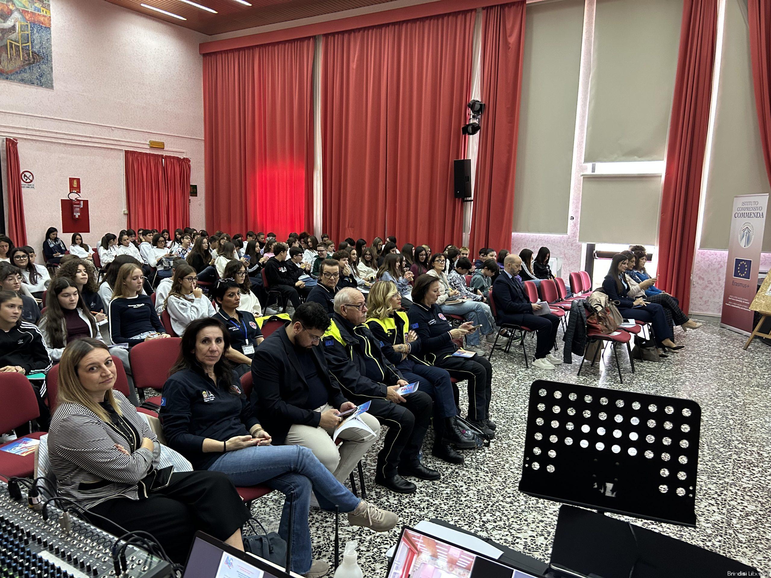 Sono intervenuti all’incontro, oltre al Dirigente Scolastico, Prof. Ing. Giosuè Rollo, la Viceprefetto Vicario di Brindisi, dott.ssa Maria Antonietta Olivieri, la Dirigente dell’Ufficio Scolastico Provinciale di Brindisi, dott.ssa Angela Tiziana Di Noia, il Presidente del Comitato Regionale di Protezione Civile, dott. Maurizio Bruno, la Dirigente Sezione Protezione Civile Regione Puglia, dott.ssa Barbara Valenzano e poi il dott. Cosma Nitti della Sezione Protezione Civile Regione Puglia, la dott.ssa Valeria Corvino dell’Apulia Film Commission, il dott. Nicola Sammarco di Nasse Animation Studio e il dott. Giannicola D’Amico, Presidente del Coordinamento Provinciale di Protezione Civile di Brindisi.