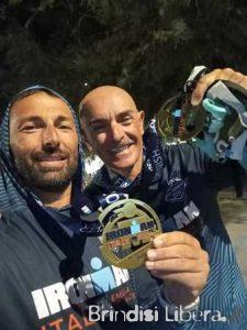 Vito Scarcella ha 57 anni e lavora in Leonardo, dove si occupa di supporto tecnico e logistico agli elicotteri. Luigi Candelise, invece, ne ha 47 ed è un sottufficiale del Battaglione San Marco. I due brindisini qualche settimana fa si sono resi protagonisti di un’impresa memorabile. Tesserati per la ZZW Team, hanno portato a termine l’Ironman Italy di Cervia, una delle gare di triathlon più dure ed affascinanti del mondo. Quasi quattro chilometri di nuoto, 180 chilometri in bicicletta ed una maratona di 42,195, una dopo l’altra. Una prova estrema che unisce resistenza fisica a forza mentale, con a monte una preparazione attenta e scrupolosa durata quasi un anno. Dodici mesi durante i quali sono riusciti a gestire il tempo in maniera esemplare, allenandosi in acqua alle 5,00 del mattino ancora col buio ed in strada nel pomeriggio dopo il turno di lavoro. Un periodo durante il quale hanno saputo trasformare la parola sacrificio in una sfida personale meravigliosa, ai confini con i propri limiti.