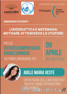 Un’occasione imperdibile per i docenti di matematica e scienze delle scuole del primo ciclo: il prossimo 9 aprile alle ore 16.00, presso l’Istituto Comprensivo Casale, si terrà il seminario dal titolo “Ludodidattica e matemagia: motivare attraverso lo stupore”, a cura della relatrice Adele Maria Veste.