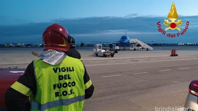 Intervento dei Vigili del Fuoco alla perdita di pressione idraulica durante l’atterraggio di un Airbus ITA a Brindisi