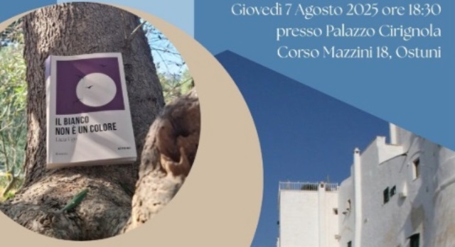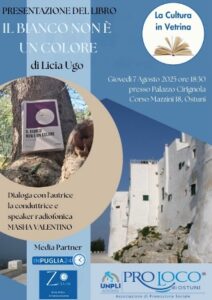 Ad Ostuni, per la rassegna letteraria “La Cultura in Vetrina”, sarà presentato il libro di Licia Ugo “Il Bianco non è un Colore”