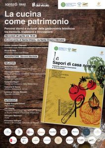 Si terrà mercoledì 29 aprile 2026, dalle 16.30 alle 19.00, presso l’ex convento Santa Chiara di Brindisi, il convegno “La cucina come patrimonio. Percorsi storici e culturali della gastronomia brindisina tra memoria, tradizione e innovazione”, organizzato dall’Inner Wheel Club di Brindisi Cristina Cordella e dal Rotary Club Brindisi. L’iniziativa metterà al centro il valore della cucina come espressione di identità, memoria collettiva e patrimonio culturale del territorio.