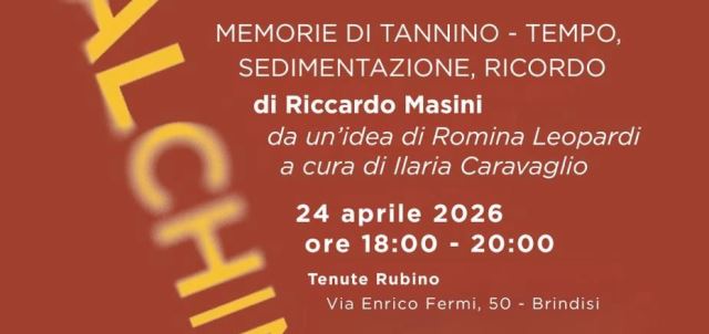 Come il vino che riposa nelle botti, anche l’installazione di Masini si fonda, dunque, su un tempo non immediato, fatto di attese e trasformazioni lente, ed il tannino, evocato nel titolo, diventa una chiave di lettura: elemento invisibile ma determinante, capace di strutturare, conservare, lasciare tracce nel tempo. Ogni appuntamento di Alchimie è scandito da incontro, racconto, visione e degustazioni, per permettere al pubblico di conoscere da vicino l’artista e vivere il vino non solo come prodotto, ma come esperienza culturale ed emozionale, e ad accompagnare questo terzo appuntamento sarà il Palombara, Primitivo di Manduria DOC, il primo vino legato al progetto artistico di Tenute Rubino già dal 2021.