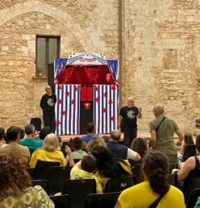 Lo spettacolo si presenta con un doppio teatrino: nella parte inferiore, una nonna è intenta a tessere al telaio, raccontando la storia di Pinocchio alla sua nipotina per farla addormentare. La favola si anima nella parte superiore, con un suggestivo alternarsi di luci e colori che guidano lo spettatore nel cuore della storia. Uno spettacolo di burattini e marionette, creato “a sei mani”, con l’immutata ambizione di parlare al cuore e alla fantasia di grandi e piccini. Pinocchio non ha età e il suo messaggio continua a essere incredibilmente attuale. A risuonare, ancora oggi, sono le parole immortali di Carlo Collodi: “Non ti fidare, ragazzo mio, di quelli che promettono di farti ricco dalla mattina alla sera. Per il solito, o sono matti o imbroglioni!”. Un monito senza tempo, un invito alla prudenza e alla diffidenza verso le promesse facili e le scorciatoie verso la ricchezza, valido per i più piccoli e forse ancor di più per gli adulti.